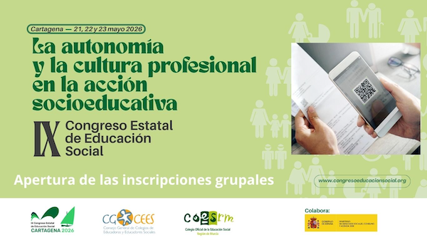 El IX Congreso Estatal de Educación Social, que bajo el título "La Autonomía y la Cultura Profesional en la Acción Socioeducativa" se celebrará en Cartagena (Murcia) los días 21, 22 y 23 de mayo. El Congreso es el mayor evento mundial dedicado a la Educación Social, referente para profesionales y académicos.