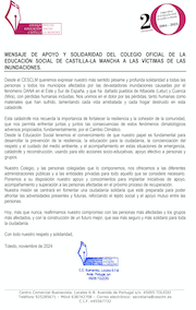 MENSAJE DE APOYO Y SOLIDARIDAD DEL COLEGIO OFICIAL DE LA EDUCACIÓN SOCIAL DE CASTILLA-LA MANCHA A LAS VÍCTIMAS DE LAS INUNDACIONES.
